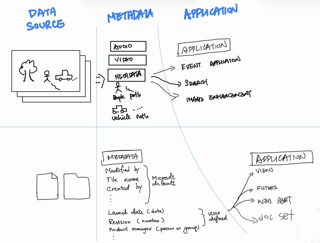 - Layer 1: user defined metadata such as person in charge, product release date, budget amount, etc.